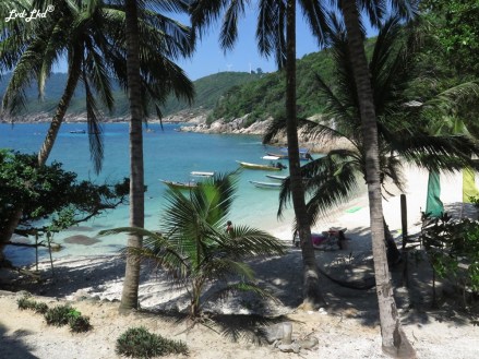 Mais maintenant que la liste des points négatifs est faite, passons aux explications et aux côtés cadre délirant dans lequel nous sommes. Si nous sommes tombés ici, ce n’est pas par hasard. Nous savions qu’il n’était pas des plus confortables mais que le cadre en valait le sacrifice du confort. Et disons que le prix que nous payons, en rapport à ce qui se trouve sur les îles, nous sommes vraiment dans le bon marché. Alors ne crions pas non plus au scandale, car ce que nous sommes réellement venus chercher, nous le trouvons, et commençons simplement par une image de notre vue depuis le bungalow pour l’expliquer.