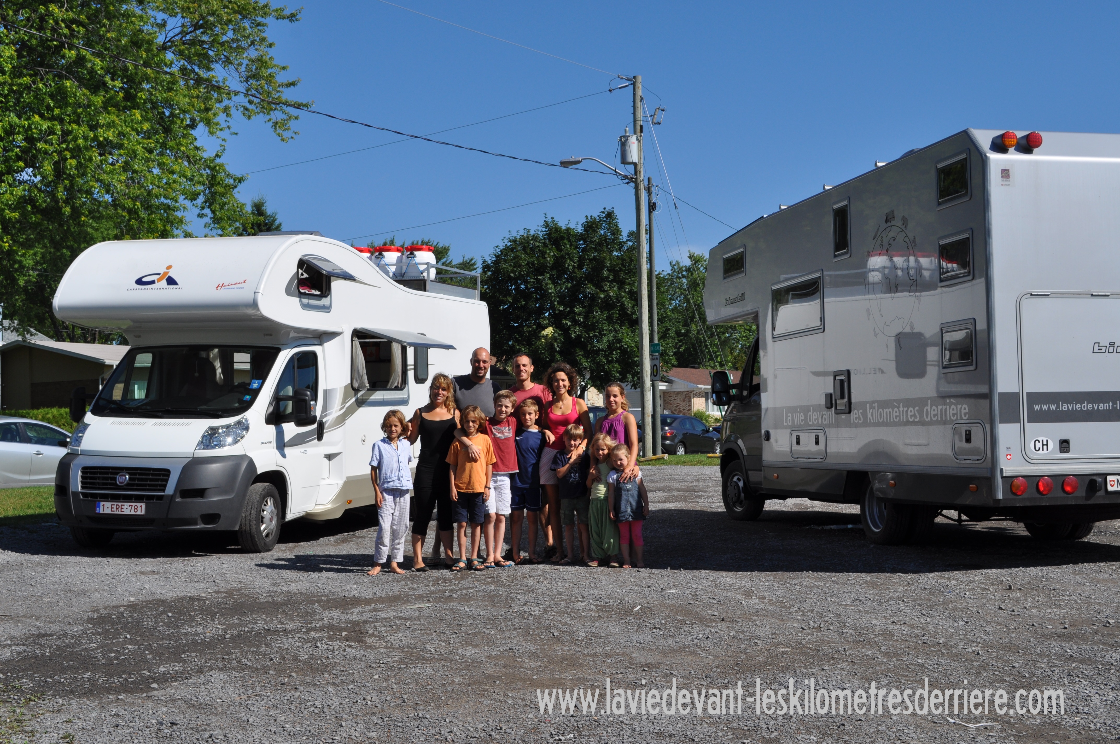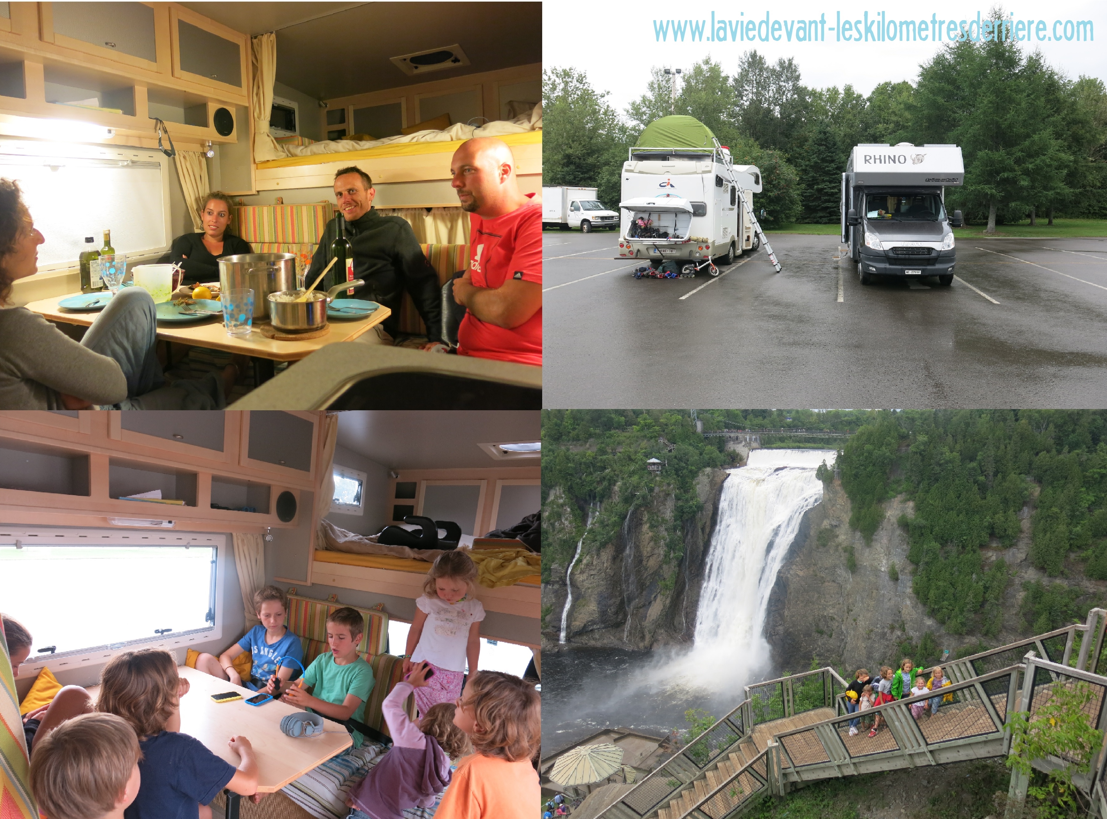 Nous nous sommes donc retrouvés au parc Montmorency. Peu propice aux bivouacs, nous sommes alors partis à la recherche d’un meilleur lieu. Le parking du club de golf de Boischatel fut, à ce titre, très accueillant. Nous avons profité de sortir le grill extérieur et fais grillé du saumon (il était entier, je l’ai donc découpé avant) que Quentin et Mano avaient emmené. Les enfants, eux, ont joué longtemps ensemble (les 5 leurs plus les 3 nôtres, c’était animé :-P). Les adultes ont profité de jaser (parler en québécois) quelque peu et ceci jusqu’à 3h du matin… Une constatation est à faire après cette deuxième rencontre de voyageurs (la première s’est faite à Moncton avec Stéphane et Anne). Dans nos situations, là où les rencontres sont brèves, les façades tombent très rapidement. Très vite, vous partez vers l’essentiel de la discussion et évitez tout genre de tabou. Nous nous sommes d’ailleurs trouvé quelques correspondances assez soutenues (scolarité Waldorf Steiner pour nos enfants, métier correspondants, événements de vie, etc.).