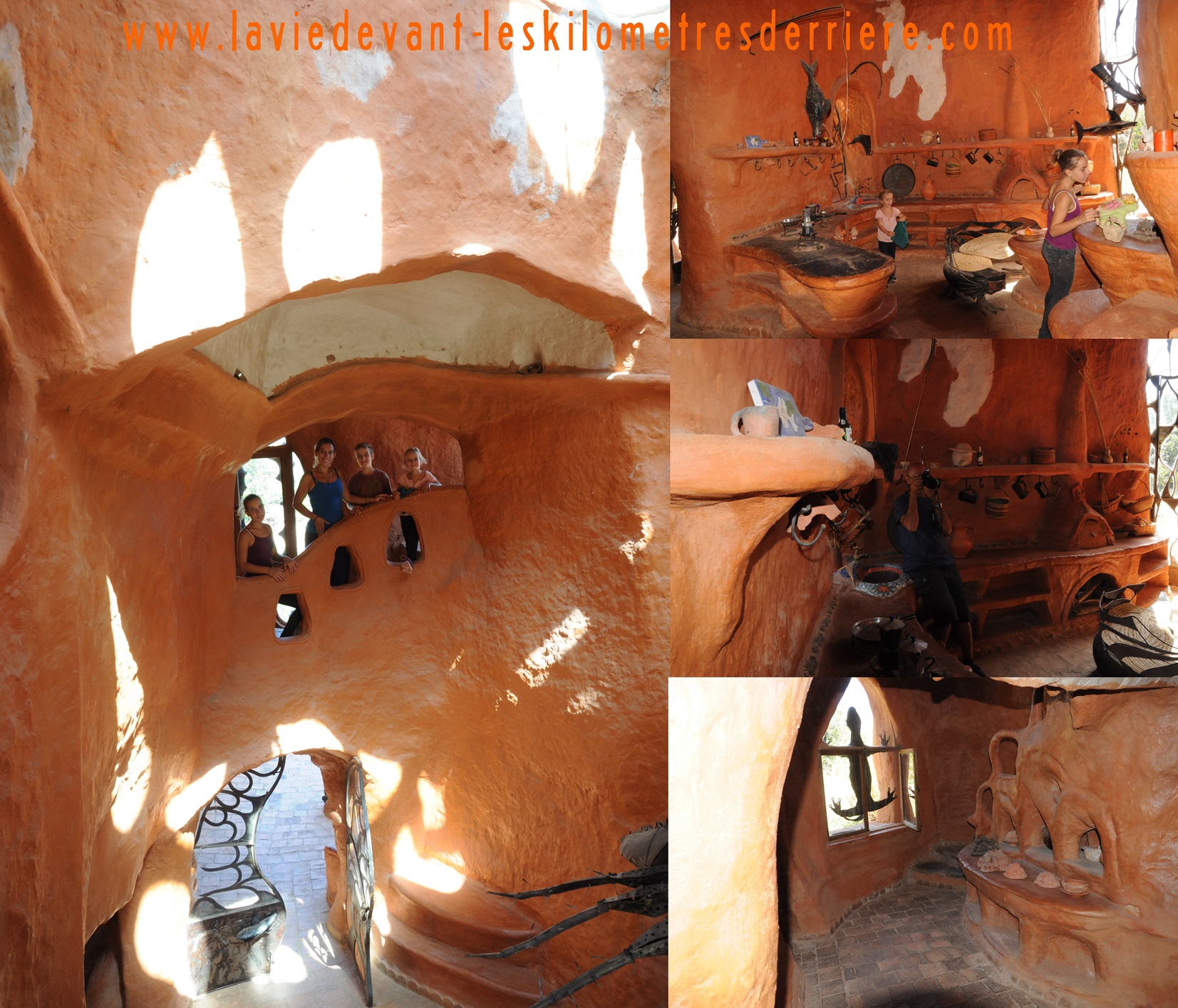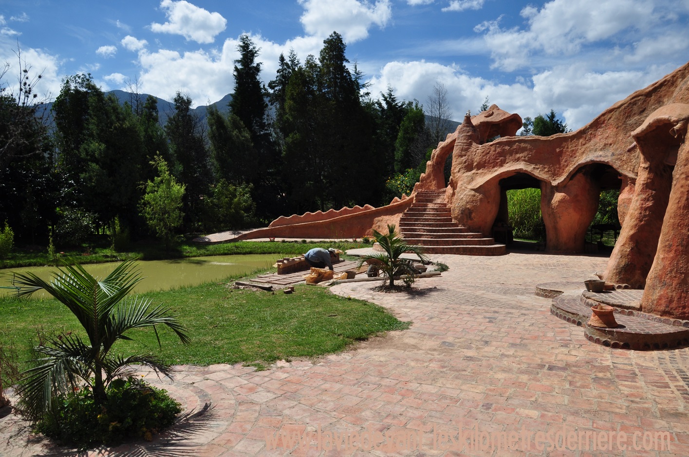 Le lendemain matin, lorsqu’Alvaro arrive, nous lui faisons part de notre envie de scolariser les enfants durant 3 jours dans une école de la ville. Il nous propose directement de nous rendre à l’école où son fils y a fait ses classes. La directrice de l’établissement accepte sans soucis et prenons rendez-vous pour mercredi matin. En attendant, nous repartons avec Alvaro dans la voiture de Jil et nous avec notre Rhino sur des routes de gravier en direction de la Villa Terracota. Cette maison, entièrement faite de terre cuite, a été pensée et réalisée par et pour l’architecte colombien Mendosa.