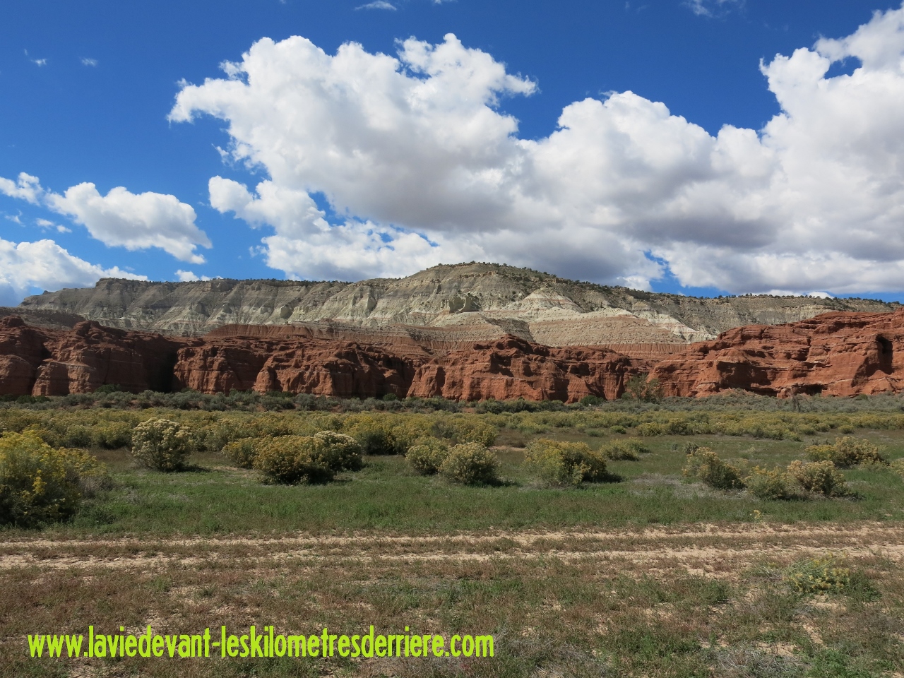En quittant Escalante, nous avons quitté la Byway 12 que je vous avais conté comme une route exceptionnelle en points de vue. Pas très grave puisque nous nous sommes engagé sur la Byway 24. Un peu plus courte, elle offre également de superbes paysages. Nous avons commencé par Capitol Reef avant de la continuer sur quelques miles et la quitter pour nous rendre à Moab.