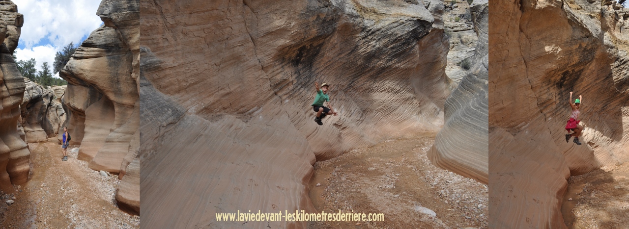 Le mardi, nous avions décidé de faire chacun sa journée de son côté. Après l’école du matin, nous sommes retournés à Arches. Aujourd’hui, j’ai demandé à Claire de pouvoir faire un trek seul. Je ressentais le besoin de passer un peu de temps isolé, dans l’effort et le vide mental. Pendant qu’elle faisait le repas avec les enfants et la visite des 2 arches, Landscape et Petition arches, je suis partis faire le Devil’s garden et le Primitive trail. Ce parcours est très éprouvant ! Le terrain est très accidenté, monte et descend, demande de grimper sur des pierres lisses et glissante et de marcher dans du sable non tassé. J’ai voulu réaliser cette marche sur un rythme cardiaque au-dessus de 120bpm, ce que j’ai allégrement dépassé durant la quasi-totalité du trail. J’ai parcouru les 14km en 2h 20 minutes et failli exploser à quelques reprises. Ce fut un très bon moment. J’ai passé par des décors fantastiques, passé un moment coupé de toute relation externe et j’ai sûrement du créer assez d’endorphine pour la semaine à venir !