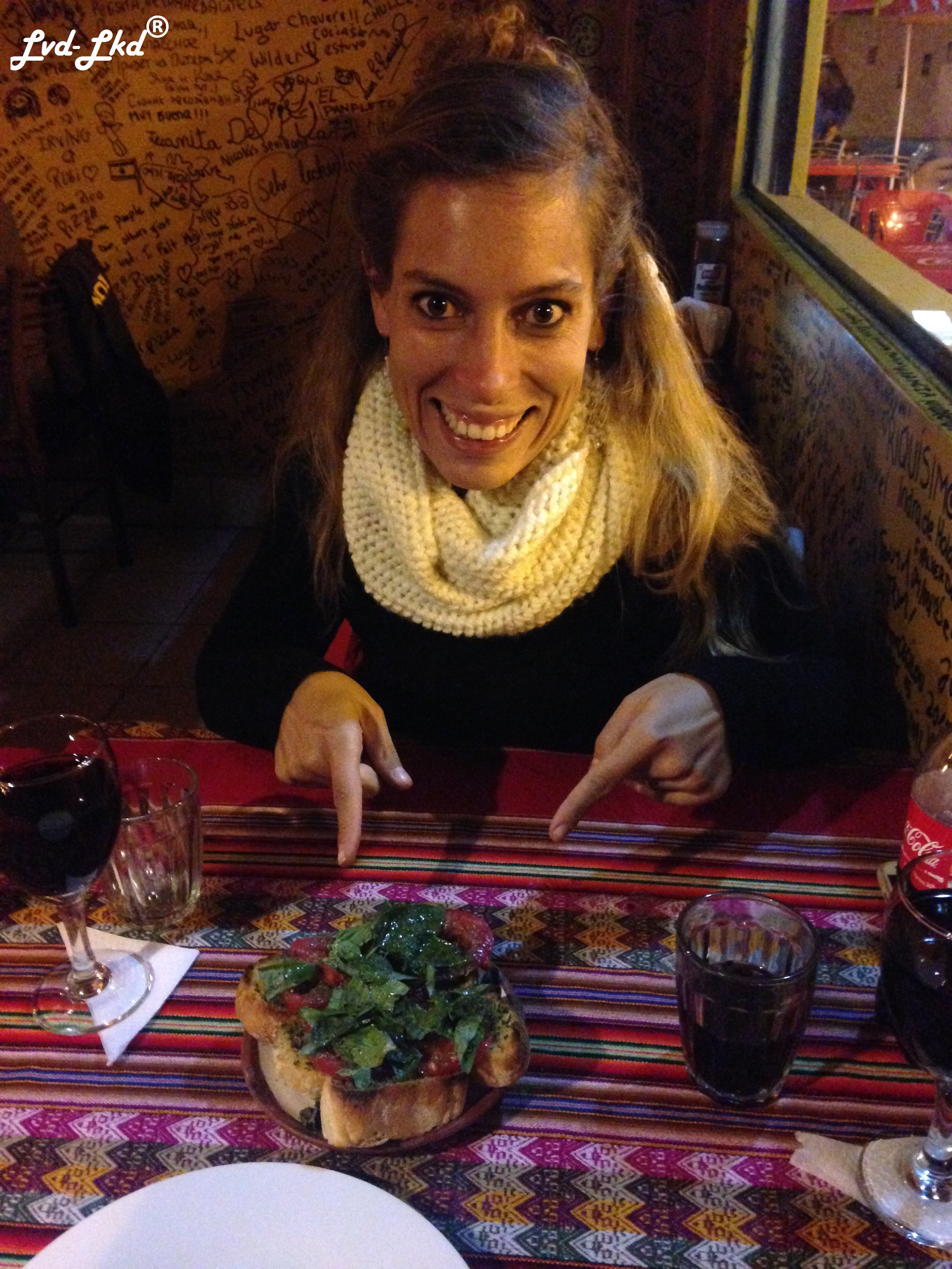 Oui, pour notre repas en amoureux, nous avons choisi une pizzeria… mais pas n’importe laquelle. Elle nous a été conseillée par Marc et France. Luigi’s pizza, pizzaiolo péruvien, a fait ses classes avec des pizzaioli italiens et ses pizzas, comme ses bruschettas, nous ont mis le sourire en place !