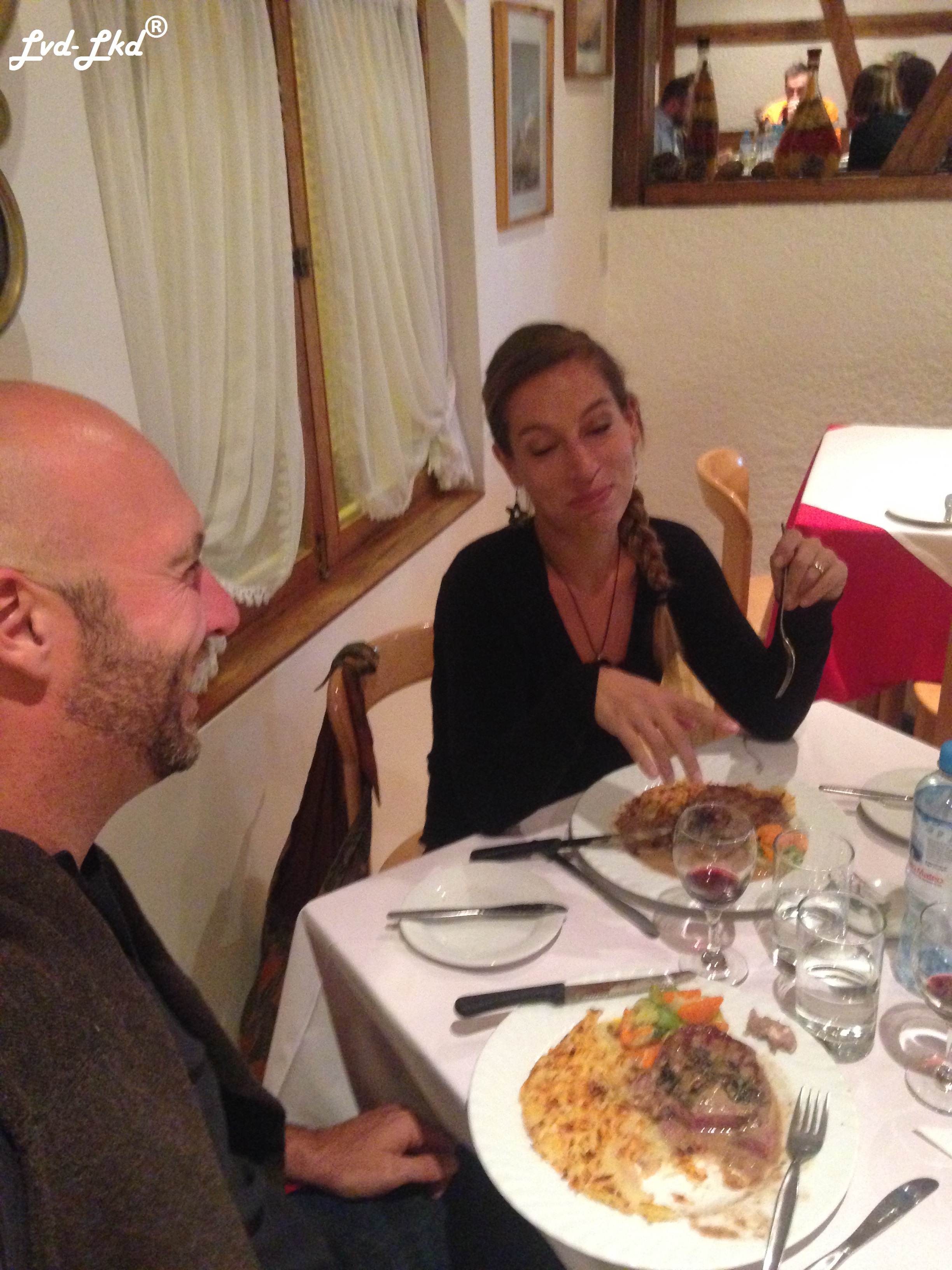 Imaginez après treize mois de voyage, pour la première fois nous allons laisser les enfants et Rhino, prendre un taxi pour nous rendre dans une ville et passer un repas juste Claire et moi sans se soucier d’autre chose que nous. Cela nous a fait un bien fou et, contrairement à ce que nous aurions pu redouter, il n’y eu pas de long moment de silence. Passant notre temps ensemble chaque jour, cela aurait pu se passer. Au contraire, vu la période de doute que nous traversons, ce repas nous aura permis d’en discuter et de voir certaines choses en face, dont une bruschetta à l’ail avec tomate et basilique frais, un véritable orgasme gustatif plus ressentis depuis des mois au restaurant. !